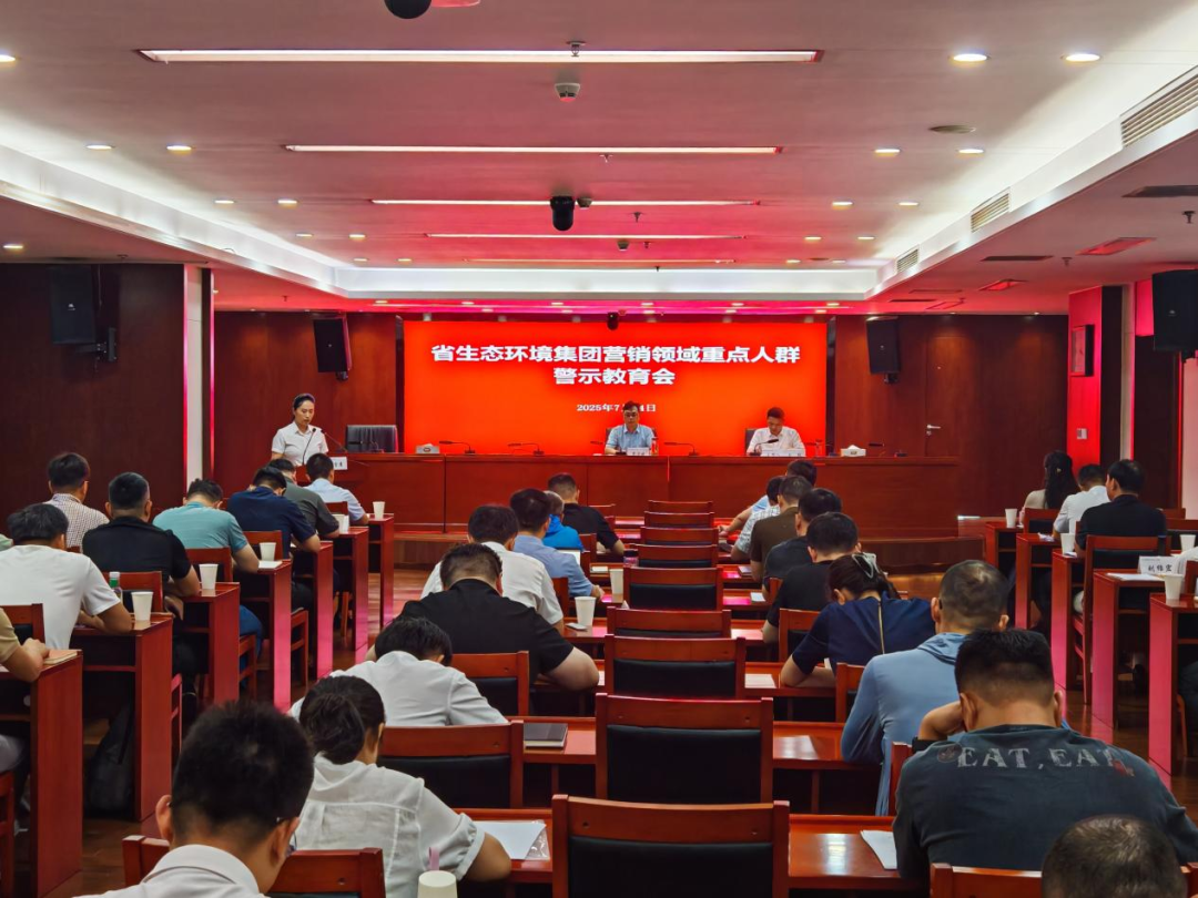 为扎实推进深入贯彻中央八项规定精神学习教育,7月24日下午,省生态环境集团以“明底线、知敬畏、守规矩、促廉洁—筑牢营销领域廉洁从业防线”为主题,召开营销领域重点人群警示教育会。集团党委委员、纪委书记罗守斌出席会议并讲话。