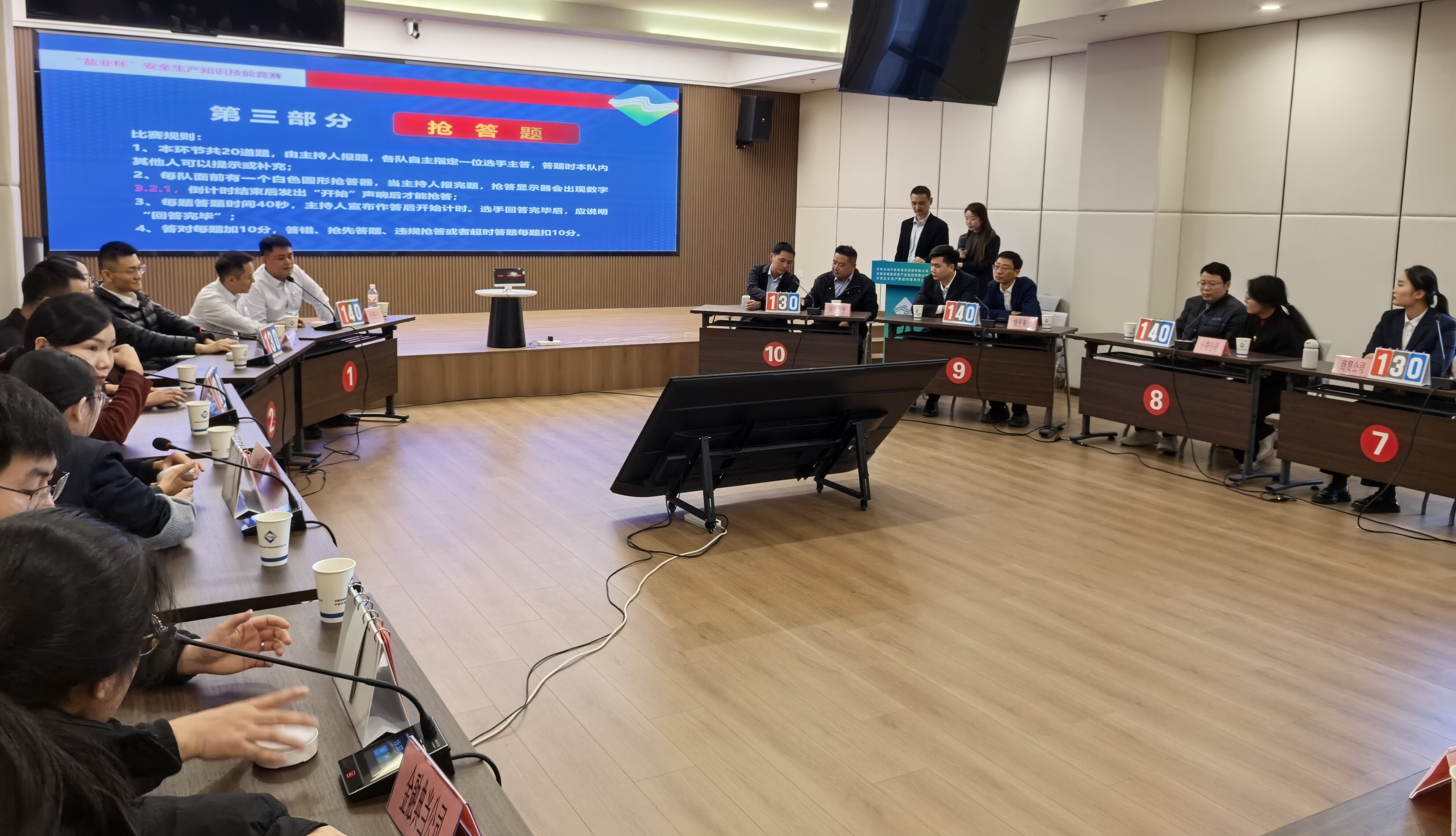 本次竞赛以“人人讲安全,个个会应急——查找身边安全隐患”为主题,聚焦政策法规和实践操作,旨在全面提升干部职工对危险、有害因素的辨识能力与应急处置技能,坚决防范生产安全事故发生。经过前期筹备,来自集团所属企业的10支代表队同台竞技,各代表队冷静答题、奋勇争先。“各显身手”个人必答和“齐心协力”团队必答环节稳扎稳打,展现扎实知识储备;“争分夺秒”抢答环节分秒必争,考验快速反应能力;“勇攀高峰”风险环节深入分析,实现理论实践深度融合。尤其在风险题环节,选手们根据实际案例查风险、找隐患,展现了对政策法规知识的准确理解和解决实际问题的良好能力。