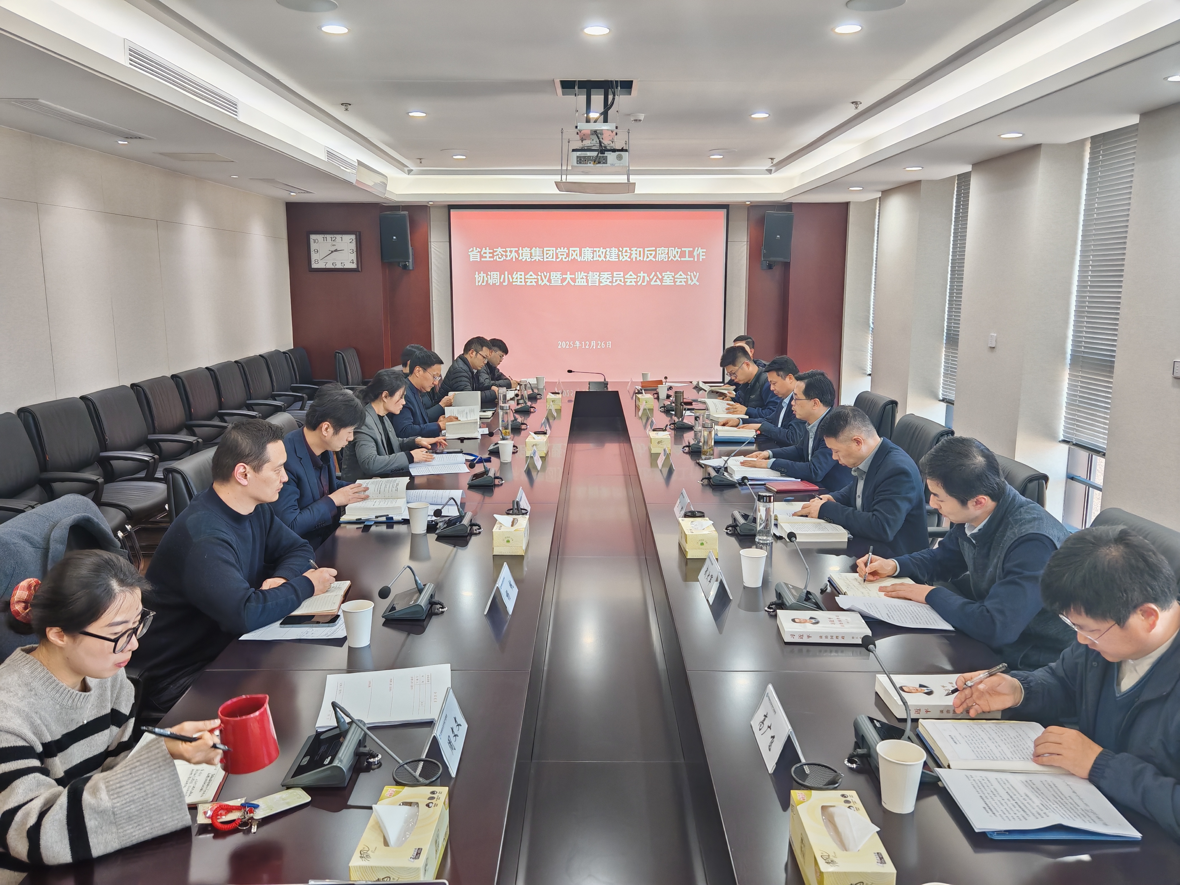 12月26日下午,省生态环境集团召开党风廉政建设和反腐败工作协调小组会议暨大监督委员会办公室会议。集团党委委员、纪委书记罗守斌主持会议并讲话。各协调小组成员单位负责人、纪委两室一组人员参加会议。