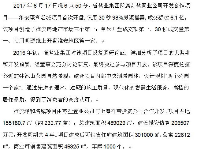 江苏省盐业集团合作开发项目开盘30秒销售6.1亿元